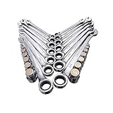 | ✚✚✚ Craftsman 9-42122 Standard and Metric Reversible Ratcheting Combination Wrench and Wrench Socket Set, 28-Piece The perfect set for working in tight spaces with 14 fully-polished reversible ratchets and 14 matching wrench sockets. Reversible ratcheting wrenches offer superior ratcheting action. Wrench sockets are laser-etched and provide additional reach and access to spaces too tight for a traditional ratchet and socket. Includes sizes 5/16, 3/8, 7/16, 1/2, 9/16, 5/8, and 3/4-Inch and 8, 10, 12, 13, 14, 15 and 18 millimeter.