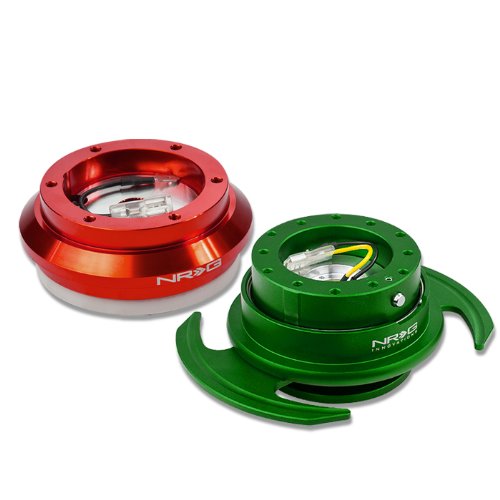 NRG-SRK-110H-RD+650GR, NRG Innovations Steering Wheel 6-Hole Aluminum Ball Bearing Short Hub Adapter with Gen 3.0 with Handle Green Quick Release SRK-110H