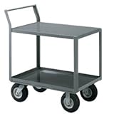| ✚✚✚ AKRO-MILS Utility Carts with Pneumatic Tires All-welded AKRO-MILS Utility Carts with Pneumatic Tires offer a cushioned ride over uneven floors. 12-gauge shelves and rugged angle posts support heavy loads. Bottom shelf is lips up, top shelf lips down. 8" pneumatic casters "2 rigid, 2 swivel. Durable powder coat finish.