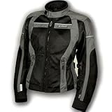 Olympia Women's Switchback Jacket (LARGE) (PEWTER)This jacket represents the highest quality to price ratio in the market. Outer shell constructed in 500 denier Cordura® fabric with ballistic airflow mesh panels. Waterproof liner jacket. Removable CE-approved Motion Flex armor at elbows and shoulders. Removable CE-approved Motion Flex articulated back protector. Cool mesh airflow lining. Custom fit detailing at collar, cuffs, elbows and waist. Comfort neoprene framed collar. 3M Scotchlite® reflective piping at front, sides and back. 8" connecting zipper for pants. Three storage pockets plus interior cell phone pocket.
